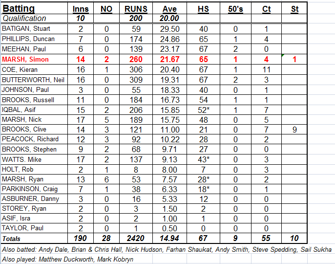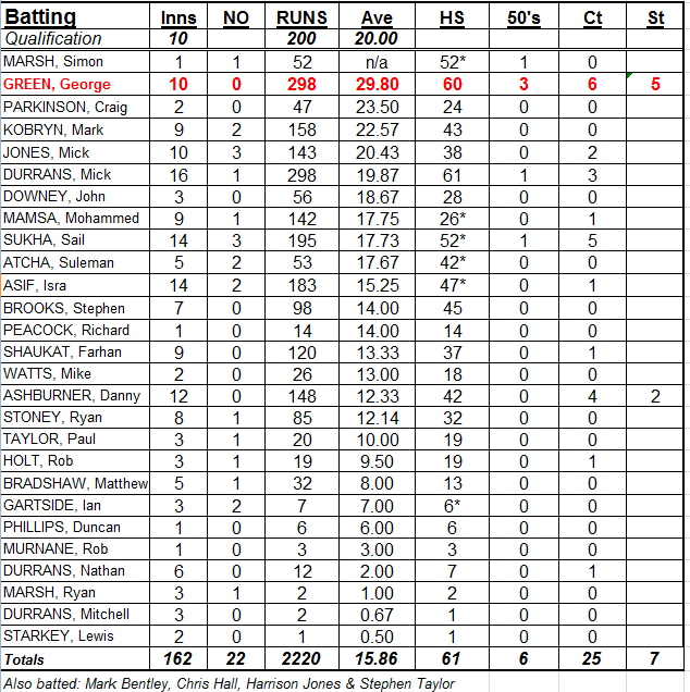 Final league and cup averages 2013